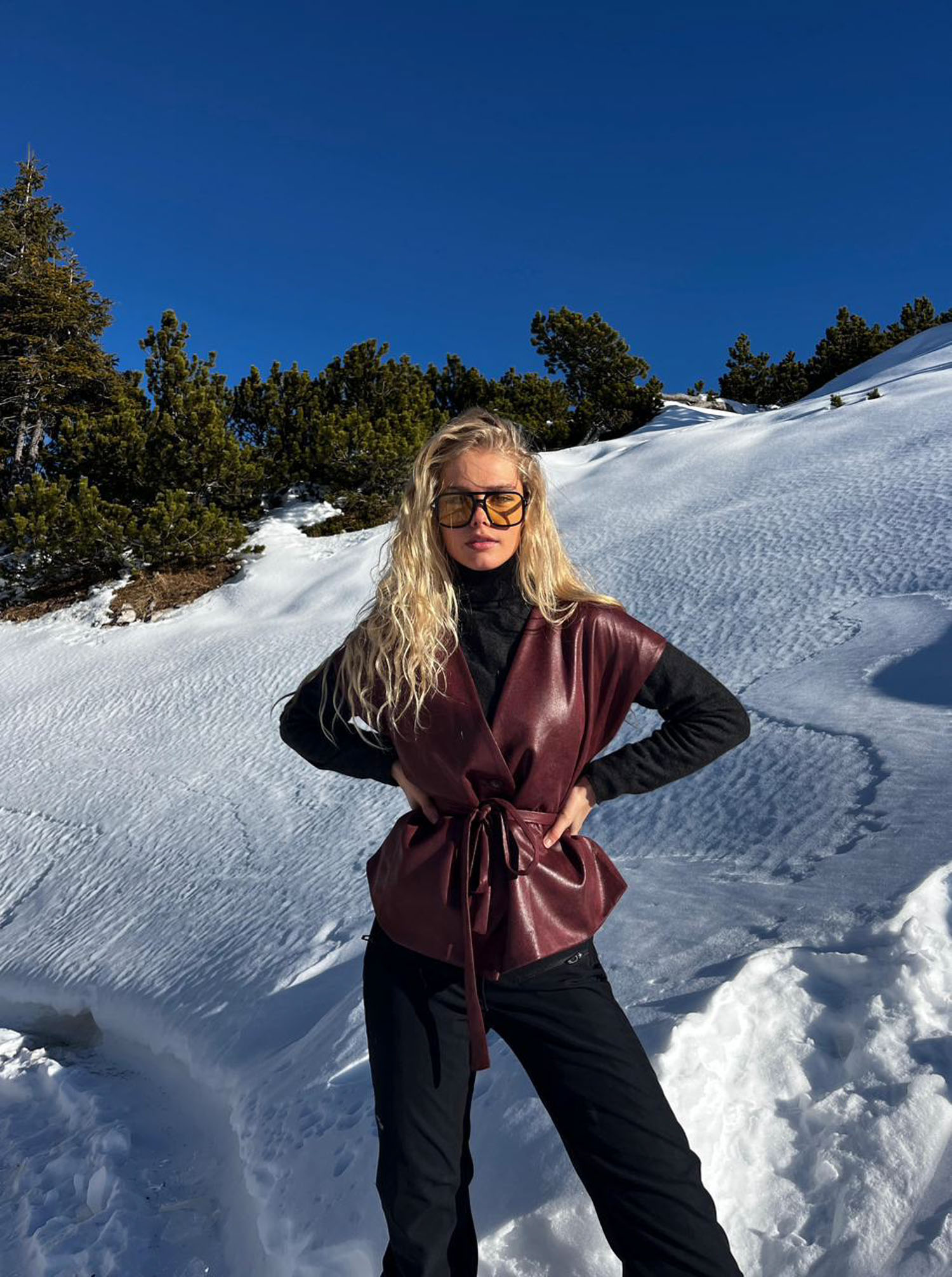 Be the first to review “Sleeveless V-Neck Faux Leather Belted Top”